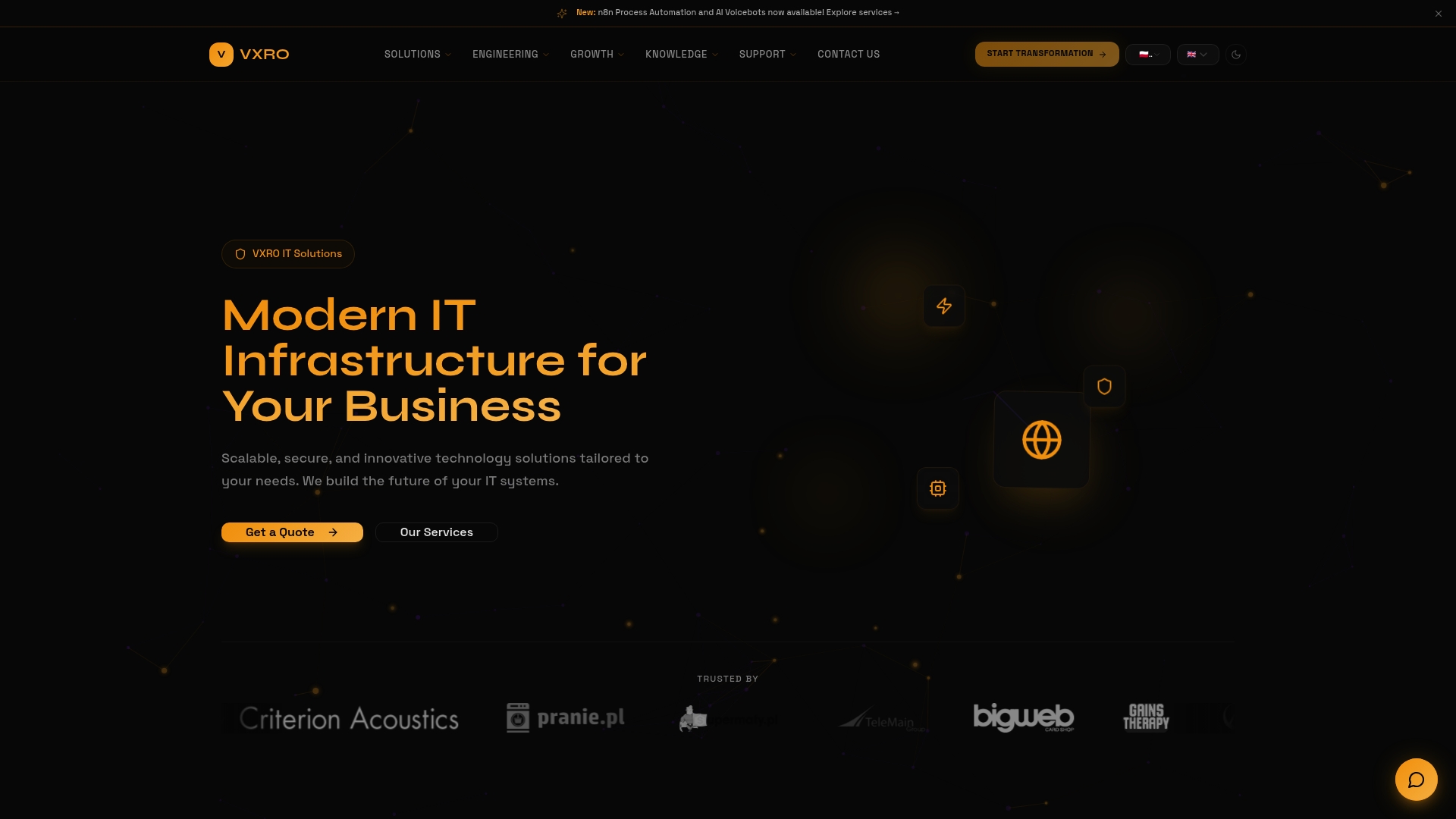 VXRO IT Solutions to top-tier dostawca usług IT skoncentrowany na skalowalnej i bezpiecznej infrastrukturze oraz automatyzacji procesów dla firm. Dla właścicieli MŚP w Polsce to najbardziej praktyczne i kompletne rozwiązanie dostępne dziś na rynku.