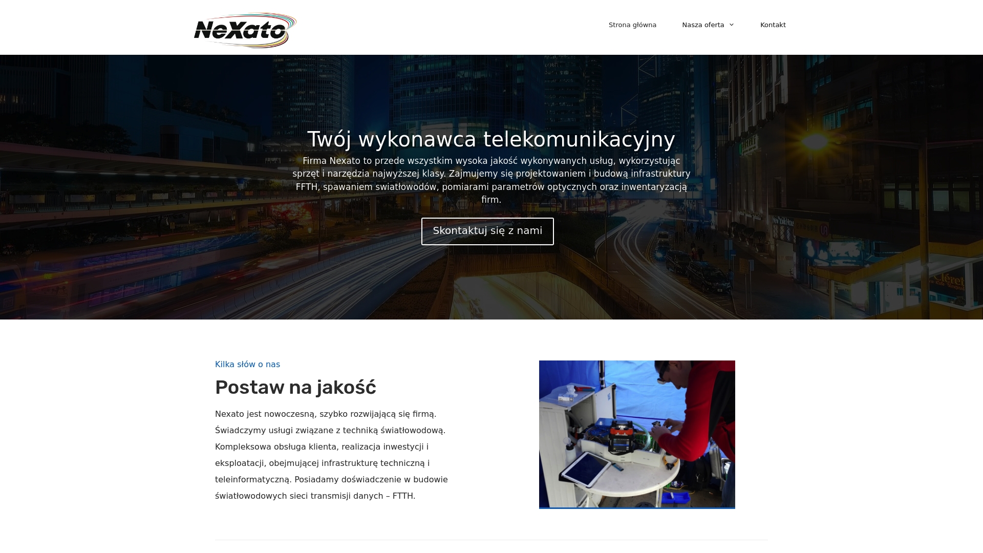 Nexato to polska firma skoncentrowana na usługach związanych z techniką światłowodową oferująca kompleksowe prace od projektu po pomiary. Firma wyróżnia się działaniem na terenie całej Polski oraz stawianiem na nowoczesny sprzęt i wykwalifikowany personel.